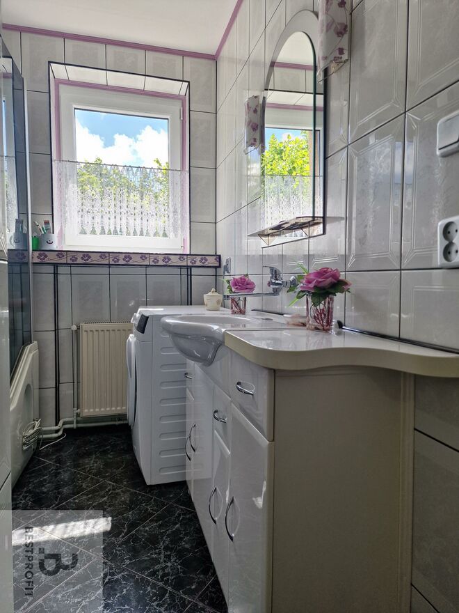 W sumie w domu jest 6 pokoi, 2 kuchnie, 2 łazienki i osobne WC.