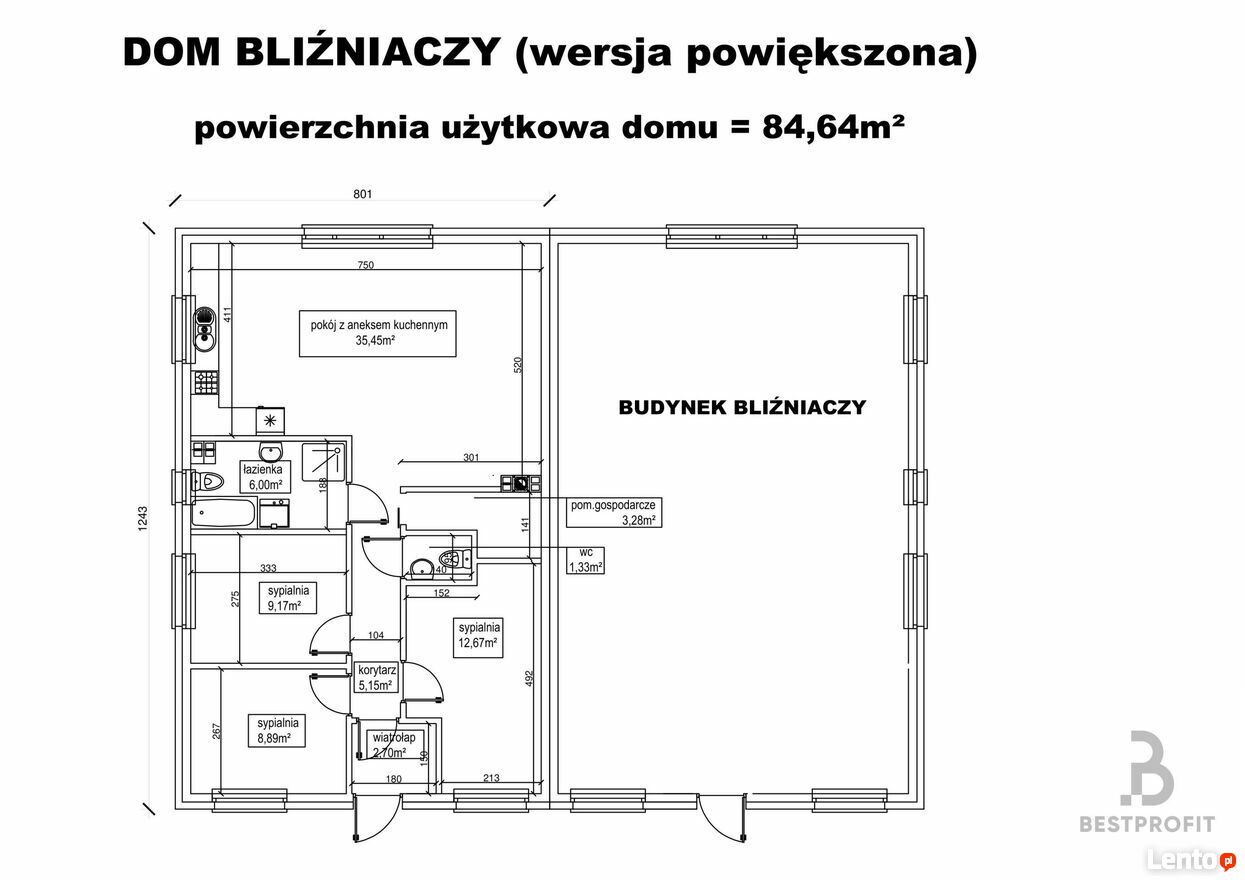 wersja powiększona: bliźniak o powierzchni użytkowej = 84,64m2